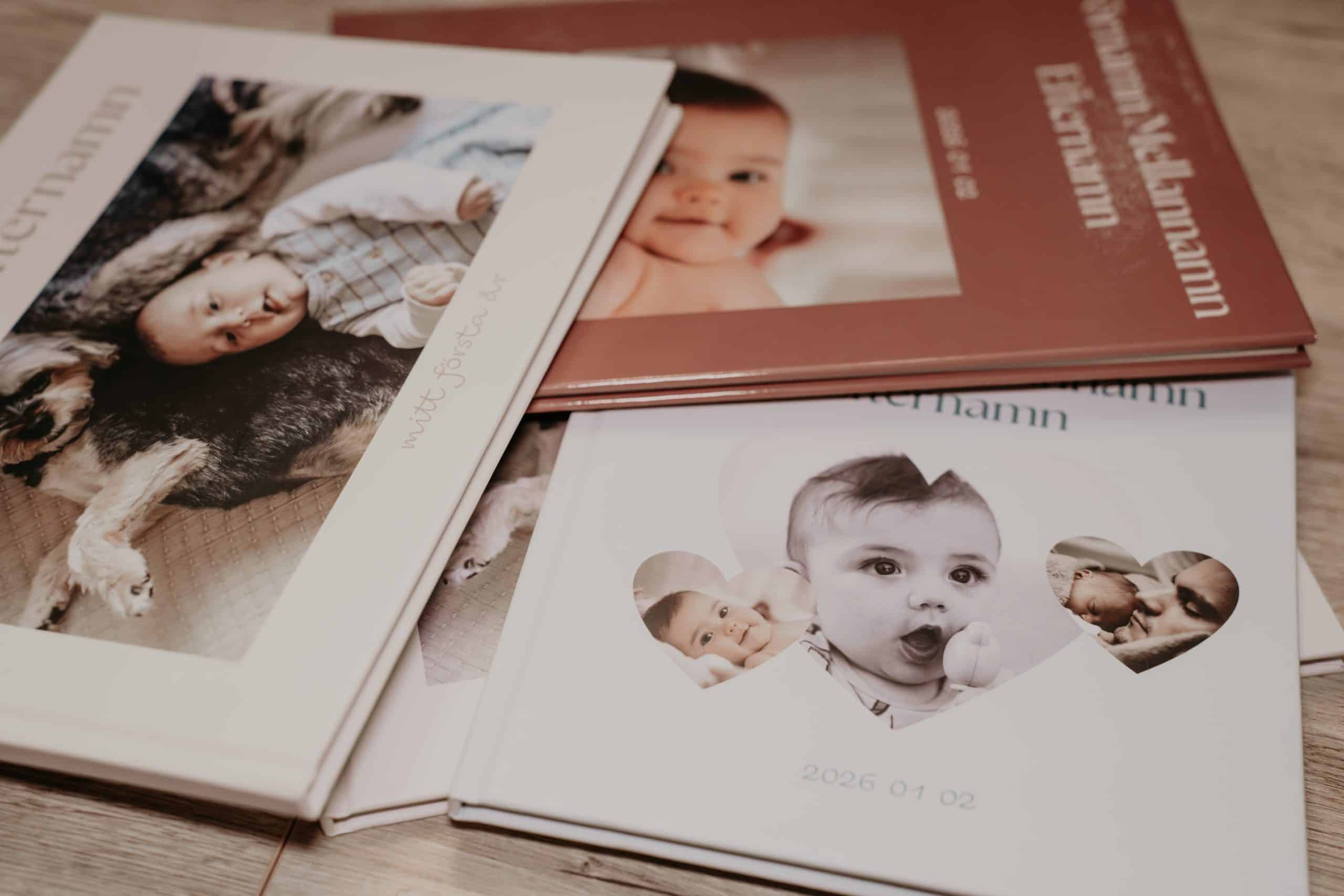 Välj storlek och fyll enkelt i sidorna med våra färdiga mallar. Lägg till bilder, texter, milstolpar för din bebis, släktträd, vaccinationskort och mycket mer – allt är redan förberett för dig.